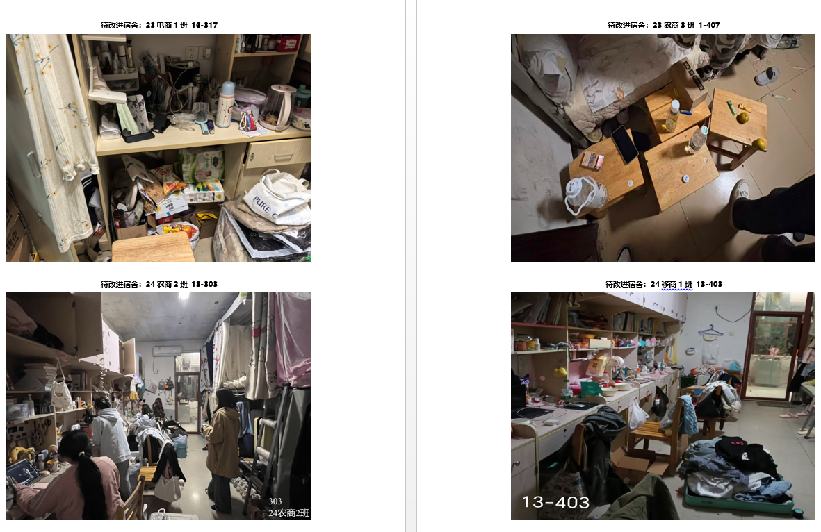 2. 对评定为“最差寝室”的宿舍进行内部通报批评,责令限期完成整改,整改情况将由学院跟进核查。