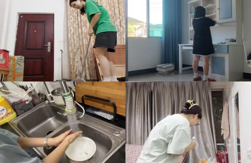 一张张对比图记录着环境的蜕变:堆满杂物的储藏室变得整齐有序,沾满油渍的厨房台面恢复洁净,蒙着灰垢的窗台玻璃变得透亮。在短短的一分钟视频里,大家忙碌的身影、挥动的扫帚、欢快的笑声交织在一起,谱写出劳动最鲜活的乐章。
