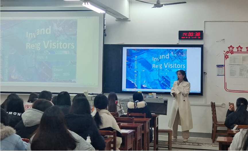 为深化我校高职公共英语教学改革,打造“语言技能+文化素养”双提升的优质课堂,12月17日下午,一堂以“Inviting and Receiving Visitors”为授课主题的公开课在博思楼310教室精彩呈现。主讲教师聂点点老师凭借精巧的教学设计、生动的课堂互动,为全体教师呈现了一堂兼具实用性、思想性和趣味性的大学英语公开课。