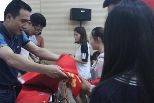 最后廖良林副院长与杨明书记为9个实践团队授旗,并于办公楼门口与参会人员合影留念。