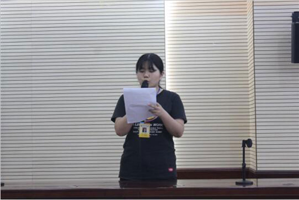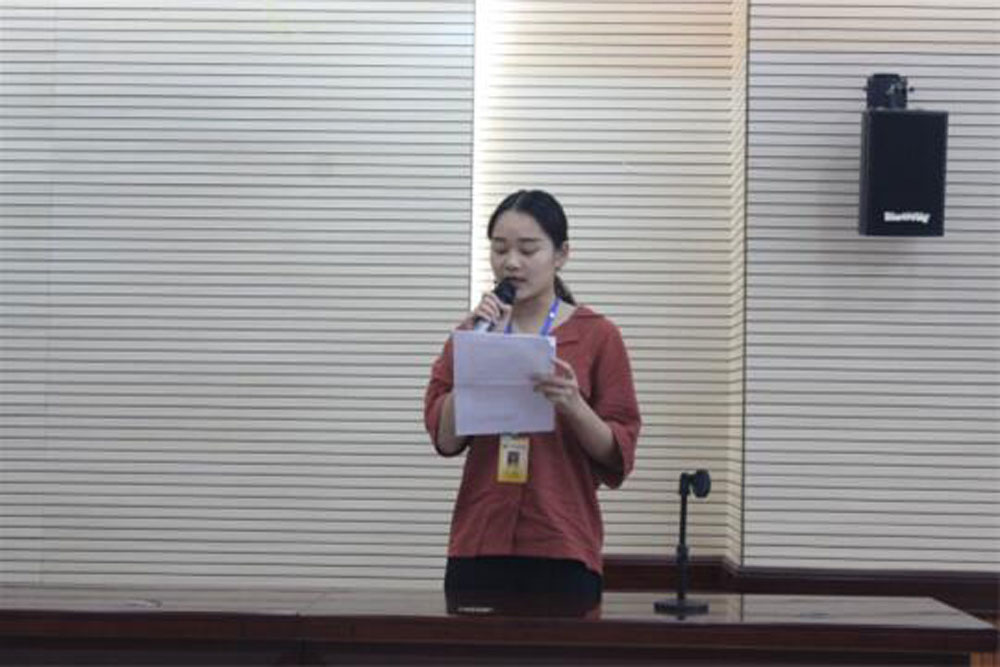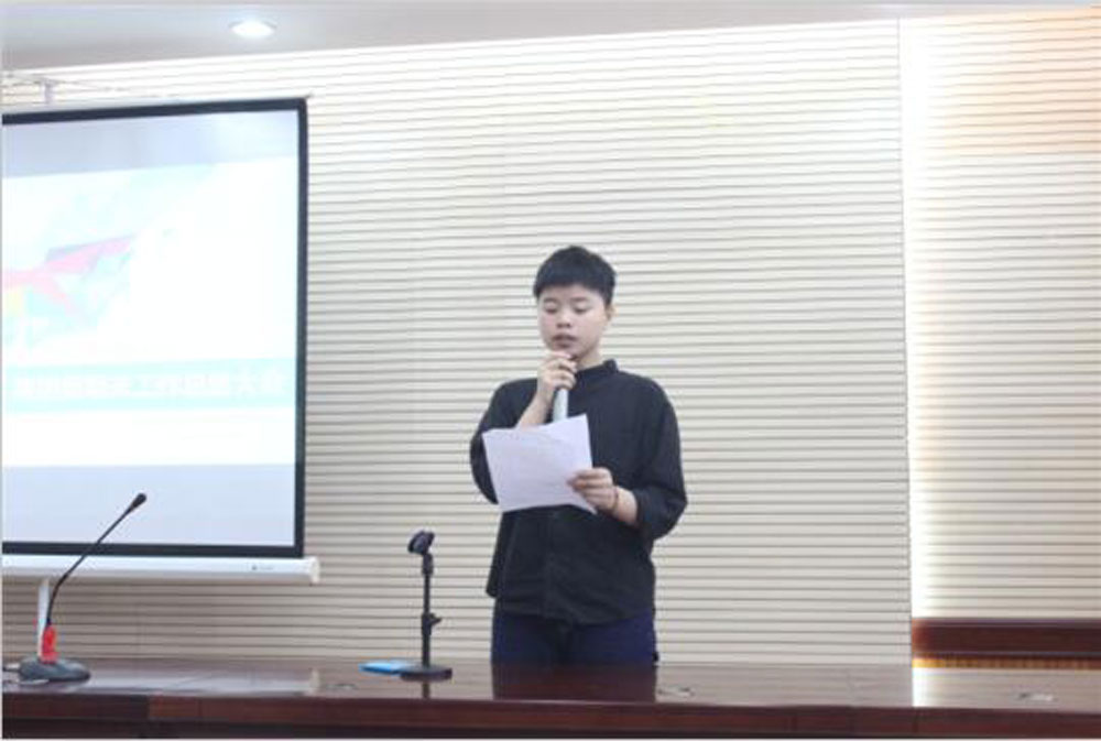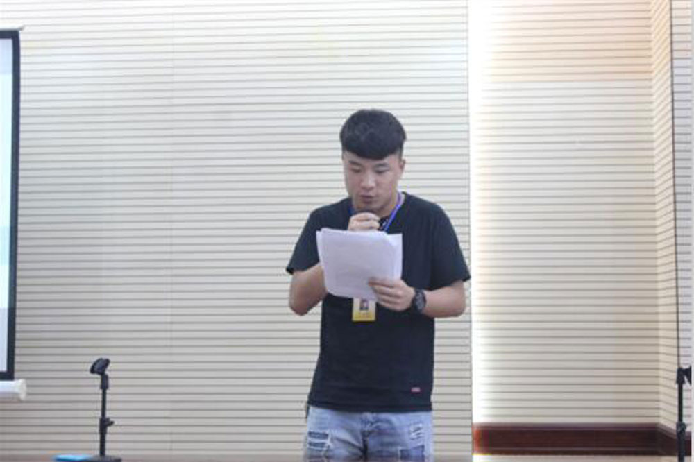 大会第一项:团委直属部门、国旗班、礼仪队、广播站代表作期末工作发言。各代表分别汇报了本学期已完成的各项团组织工作、本学期开展团组织建设工作时出现的不足及下学期团组织建设的计划。大会第二项:院团委杨明书记作期末工作总结发言。他首先肯定了本学期团委各部门在工作上做出的成绩,但也提出了改进工作的几点建议:各部门需大力优化活动质量而不是数量、加速开展日常工作的效率、打造特色部门文化底蕴和优秀的干部队伍素质。杨明书记希望各团员干部不忘初心、戒骄戒躁!并鼓励大家继续奋斗、创新。