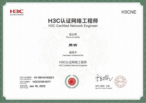 16网络专业周晴等16名同学喜获H3CNE证书