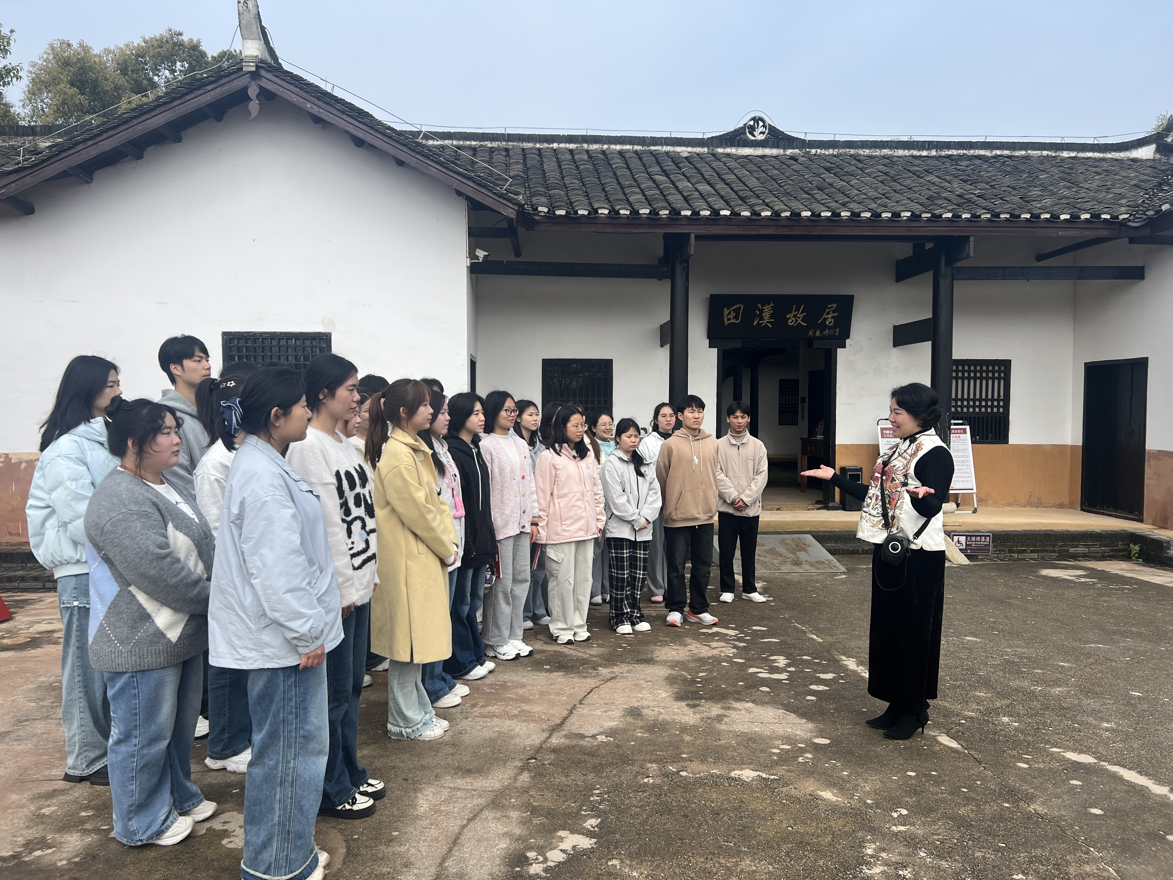 为深入推进新时代思政课教学改革创新,打破课堂壁垒,将红色文化资源转化为鲜活生动的育人素材,切实增强思政教育的吸引力与实效性,2026年3月27日,马克思主义学院组织30余名师生走进田汉故里,开展“行走的思政课”实景教学活动。师生同台授课、现场研学交流,在沉浸式体验中感悟家国情怀、传承红色基因,充分彰显了学校思政课教学改革的扎实成效与创新活力。