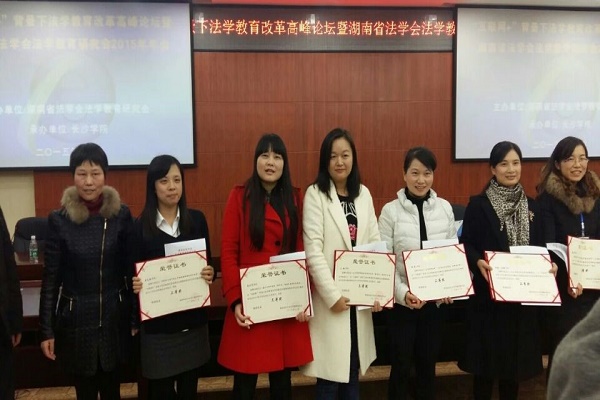 会议宣读了《关于表彰湖南省法学会法学教育研究会2015年年会优秀论文作者的决定》,我院黄亚宇老师撰写的论文《会计专业中高职<经济法>课程衔接设计与实践》获得三等奖.