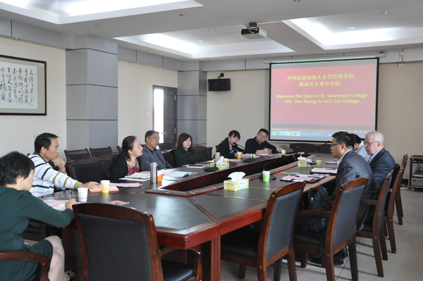 10月12日上午9时,加拿大圣劳伦斯学院国际教育学院Don Young院长和该院中国首席代表刘旭先生一行访问我院。我院院长孔军山、副院长杨文涛、党委委员禹明华以及招生就业处、对外合作交流处、经管系负责人等会见了来宾一行,双方就国际合作办学事宜展开座谈。座谈会由学院党委委员禹明华主持。
