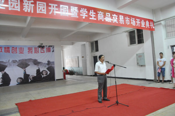 周忠新书记宣布”湘商创业园“新园开园、学生商品交易市场开业