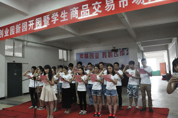 开园典礼上,学院孔军山院长在致词中说:在“大众创业、万众创新”的大环境下,学院在湘商创业园内成立学生商品交易市场,旨在给学生在校园内进行商品交易搭建一个良好平台,营造我院学生“人人学经商、人人想经商、人人会经商”的商务氛围。他也寄望同学们在这里领悟湘商精神,学诚信经商,悟商务之道!开园典礼上,学院招生就业处张庆副处长还带领入驻项目的学生领诵湘商宣言,希望创业的青年学子秉承湘商优良传统,弘扬湘商精神。