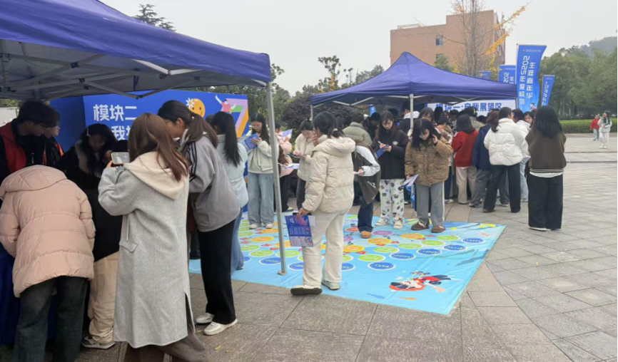 12月2日,湖南商务职业技术学院孔子广场化身沉浸式“生涯探索乐园”,一场别开生面的“生涯嘉年华”活动在此热烈展开。活动以“线上互动+线下体验”双线融合的形式,将职业规划转化为八大趣味闯关游戏,吸引众多学子在轻松参与中探索自我、展望未来。