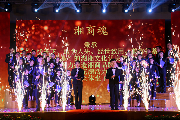 晚会在一曲优美的开场舞《一波湘水 荡湘云》中拉开帷幕。经贸学院院长易能向在场师生表达了美好祝愿,希望同学们树立健康向上的人生理想,把握人生,成就精彩,将自己最美的青春献给这个最好的时代。之后的表演中,小品、话剧、歌曲、舞蹈等节目轮番上阵。其中,16国贸专业带来的舞蹈《RunawayBaby》,节奏紧凑,动态十足,展现了当代大学生的青春与活力。17市营1班表演的小品《不忘湘心》诙谐幽默,引得观众阵阵喝彩。17电商1、2班共同演绎的《幕影青春》紧扣大学三年的时光,以新颖的表演形式展现了时光如梭的青葱岁月。晚会上,同学们的舞台创意和表演才能,得到了在场观众的交口称赞。晚会在该院团学分会代表团集体朗诵的《湘商魂》中圆满落幕。