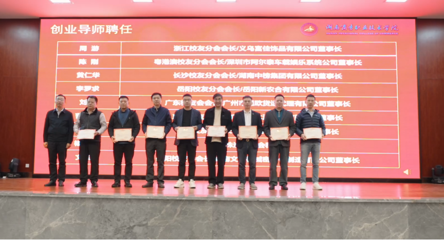“这不仅是一份聘书,更是一份沉甸甸的承诺。”12月2日下午,在湖南商务职业技术学院创业书院创业导师聘任仪式暨“企业家进校园”讲创业故事的现场,当校友企业家们接过红底金字的聘书时,一场关于创业精神与实战智慧的“传灯”之旅,也在冬日的暖阳中悄然开启。昔日学子,今日导师——他们带着来自市场一线的实战经验与人生感悟重返母校,为怀揣创业梦想的学弟学妹照亮前行的道路。
